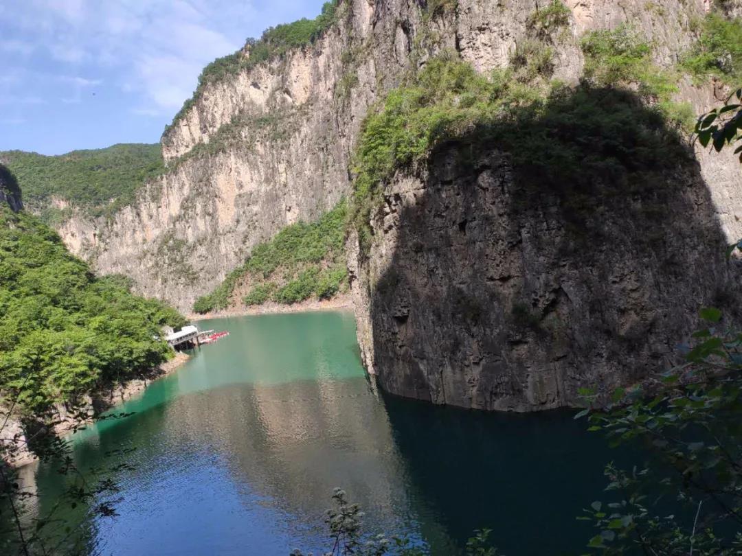 22日上午我們迎著艷陽來到了紅豆杉大峽谷,要進入峽谷之前首先要爬近乎于180度的山階登頂,途經龍峽湖再乘坐游艇前往大峽谷。龍峽湖湖水和山緊密相連,湖貼著山,山摟著湖,碧綠的湖水深不見底,青山綠水常見,但是如此碧綠的水真的是第 一次見到,此情此景仿佛只有在電影里才可以感受到。