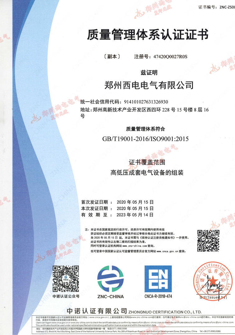 質(zhì)量管理體系認(rèn)證證書