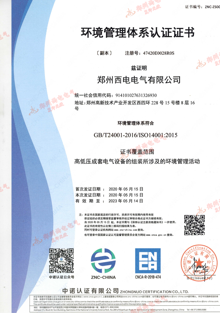環(huán)境管理體系認(rèn)證證書