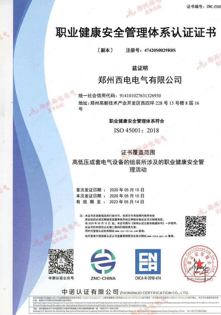 職業(yè)健康管理體系認(rèn)證證書