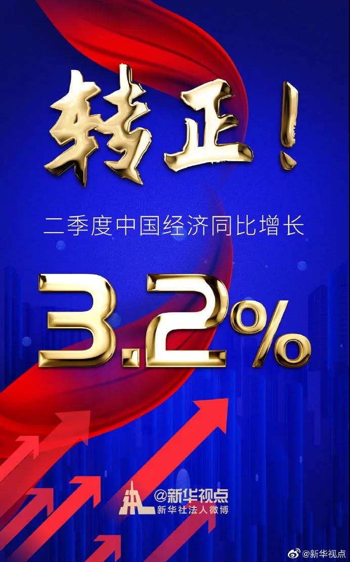 國家統計局16日公布,二季度中國經濟同比增長3.2%。在一季度同比下降6.8%的情況下,這個“轉正”來之不易。